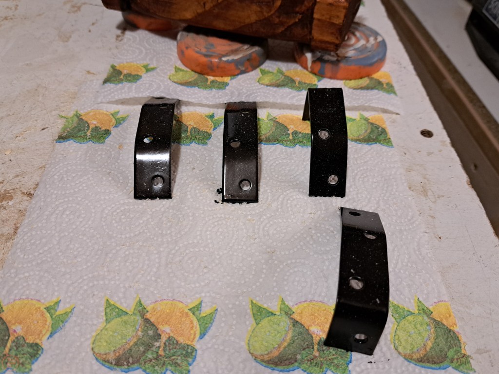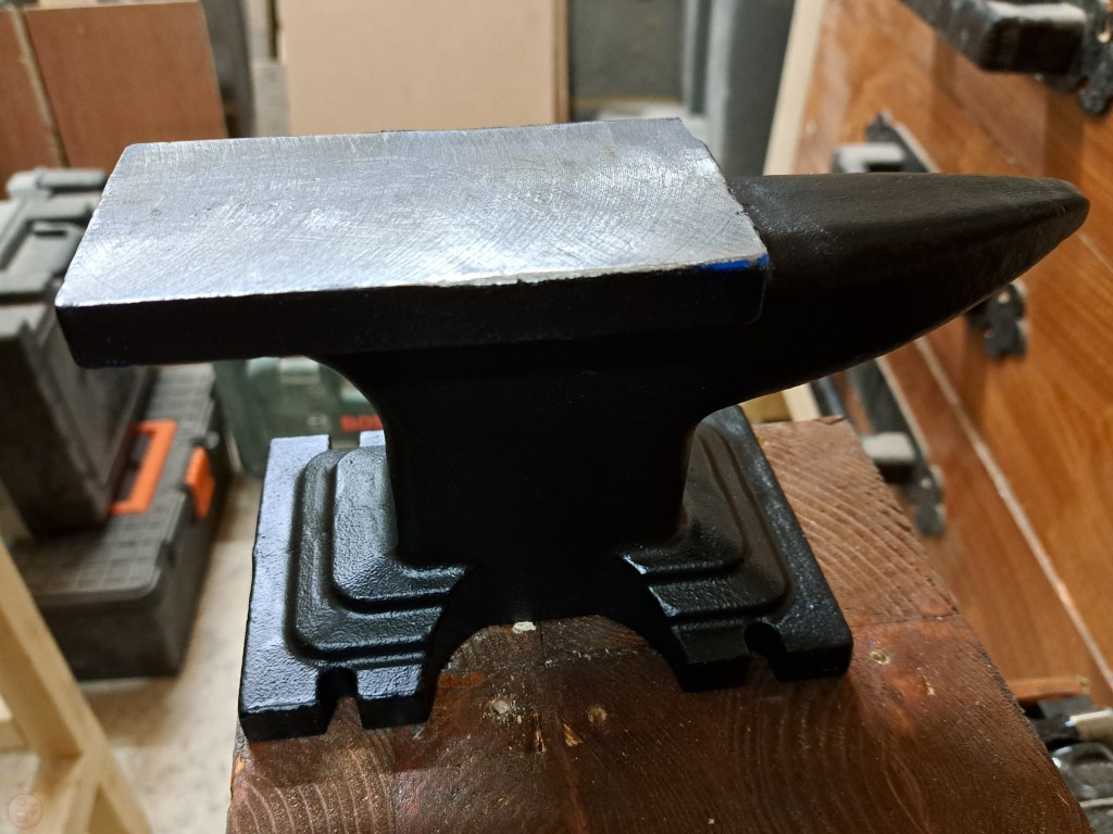I also decided to spray paint the anvil black, to mute the bright blue colour! I covered the anvil face with tape so that would remain unpainted and then applied an even coat over the whole surface. Pleasingly this worked really well and after a couple of hours the paint was dry and I could remount the anvil to the stand using the newly shaped and painted brackets.