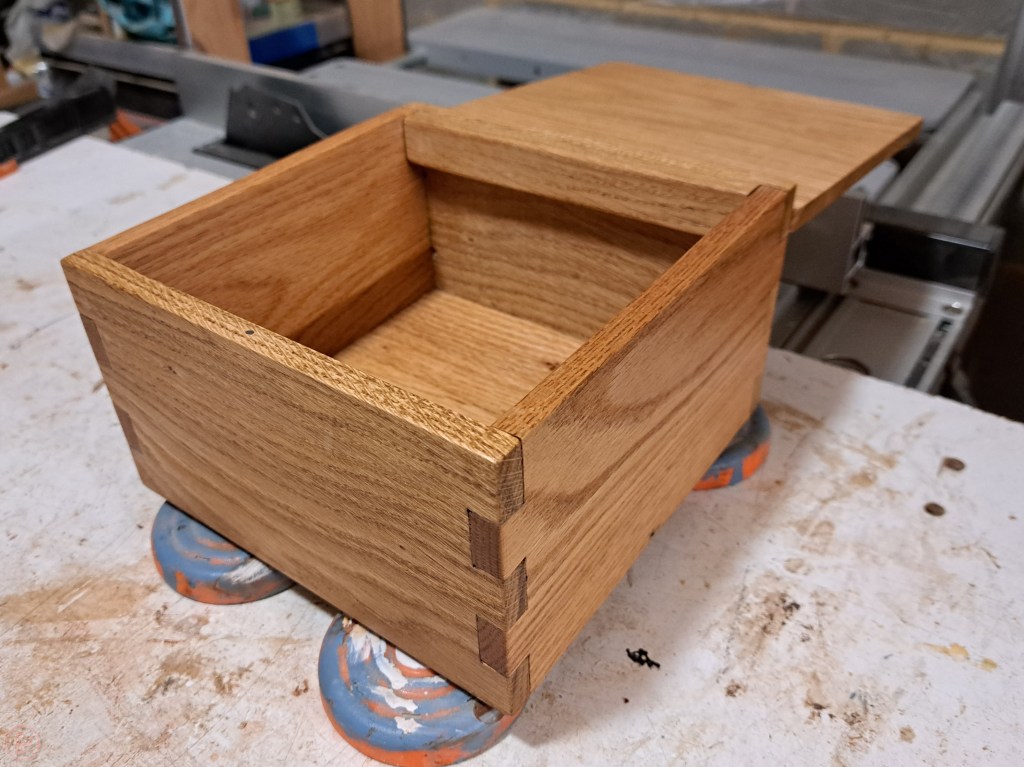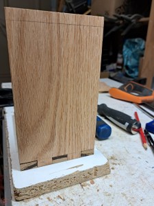 One of the things we discovered however, is the silicone is great for collecting dust (and cat hair!) when left open to the air. So of course, I decided to make a nice storage box to keep them in, using some oak pieces I had in the workshop.