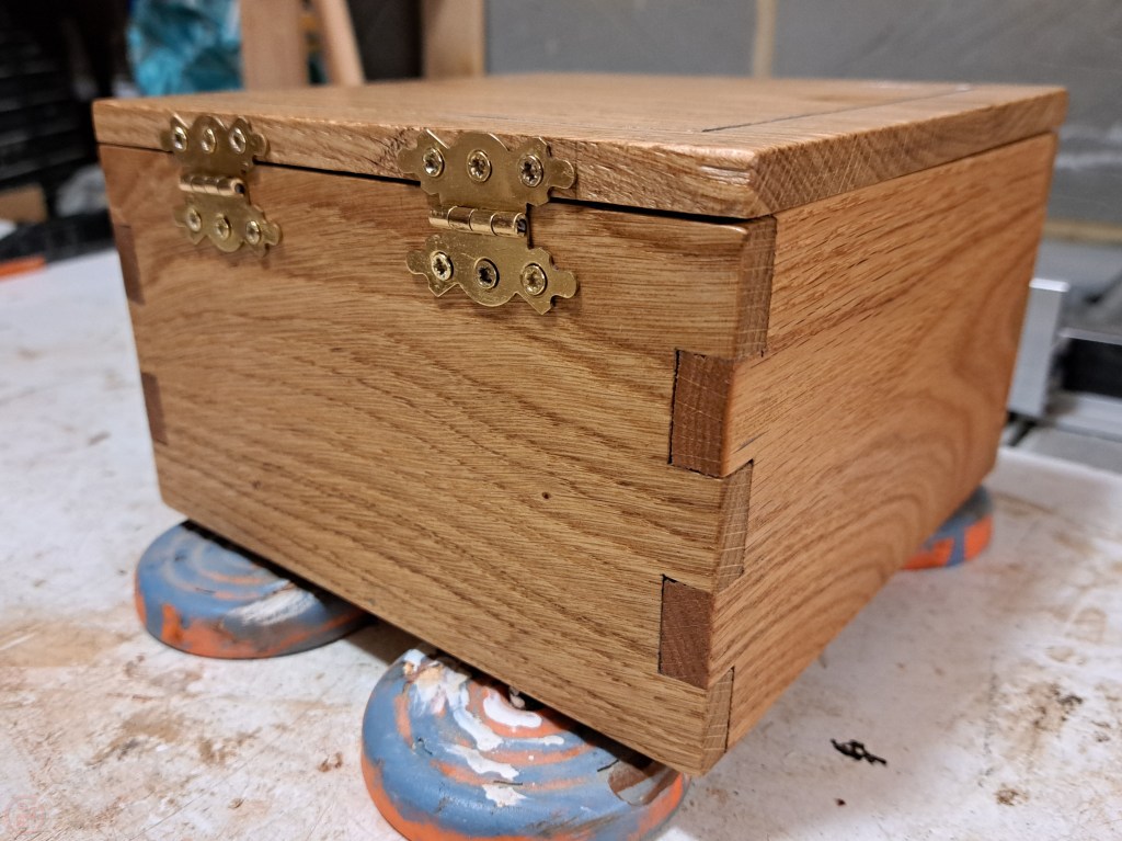 I’m really pleased with how this box turned out! The catch on the front is really easy to use to open the box and the bit bowls are kept dust free and tidy in the box. And then we can just grab the whole box when we want to play a game, or stick it in a bag to take to a friend’s house when needed. A simple box but a very useful one! 🔨