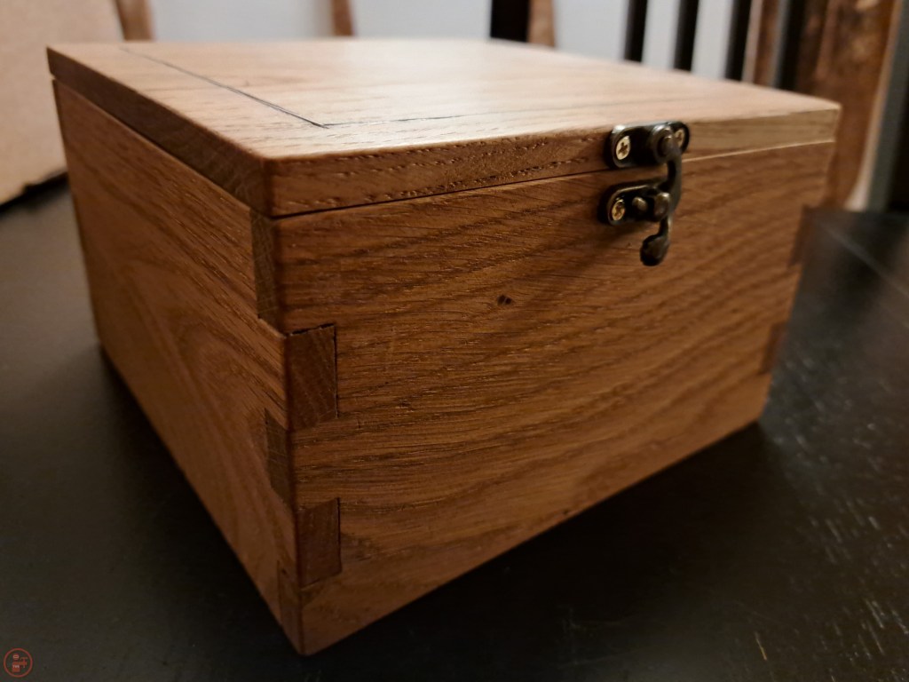 I decided to use Danish oil to finish the box as it provides some protection for regular handling and highlights the grain very nicely. I left the box to dry for a few hours after applying the final coat and then wiped it down thoroughly to remove any remaining oil.