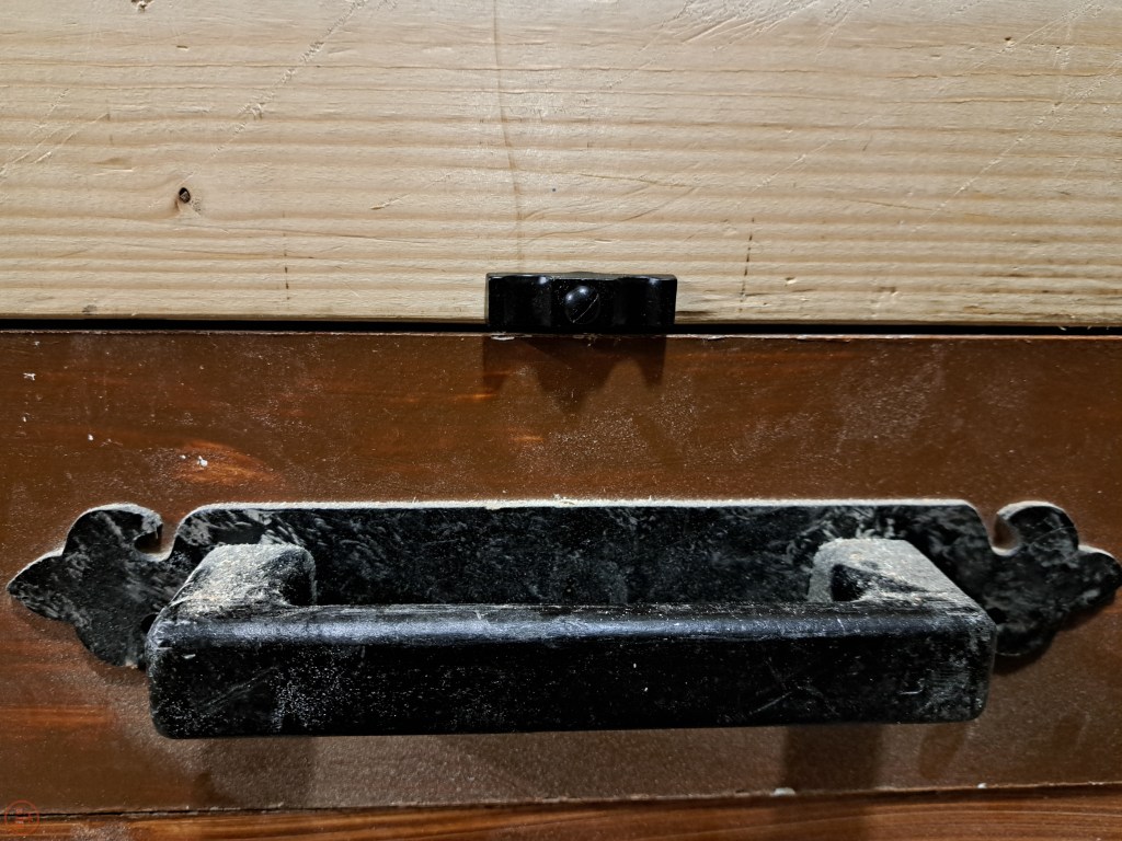 The simple solution was some “turn button thumb latches” – a single screw in the middle of a turn-able metal fixing. This allows me to quickly secure the drawers in place for moving the whole mitre saw bench without the drawers flying open and smacking me in the shins, while also allowing me to access the contents again with just a quick rotation of the catches to the horizontal or vertical position accordingly.