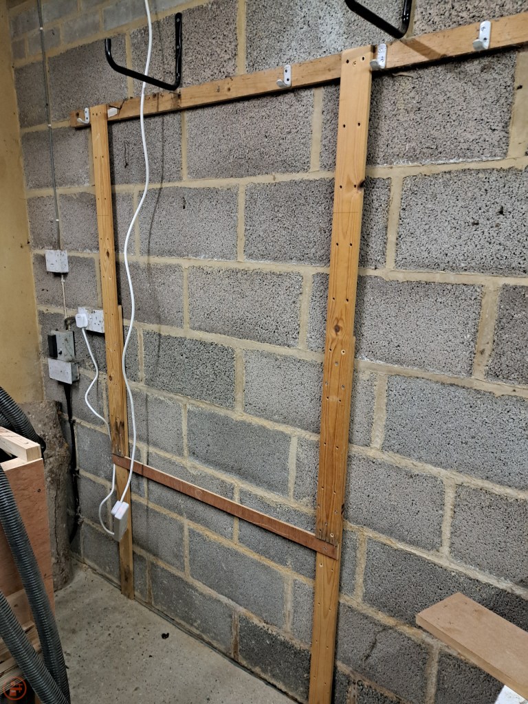 To sort out the wiring, I decided to make a frame to sit against the wall, to which I could fit my boxes and cabling setup.