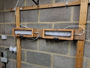 With the lighting all now in place, I connected up the plug using the small cabling box I made previously and secured the additional cabling in place with some more cable grips and careful hammering.